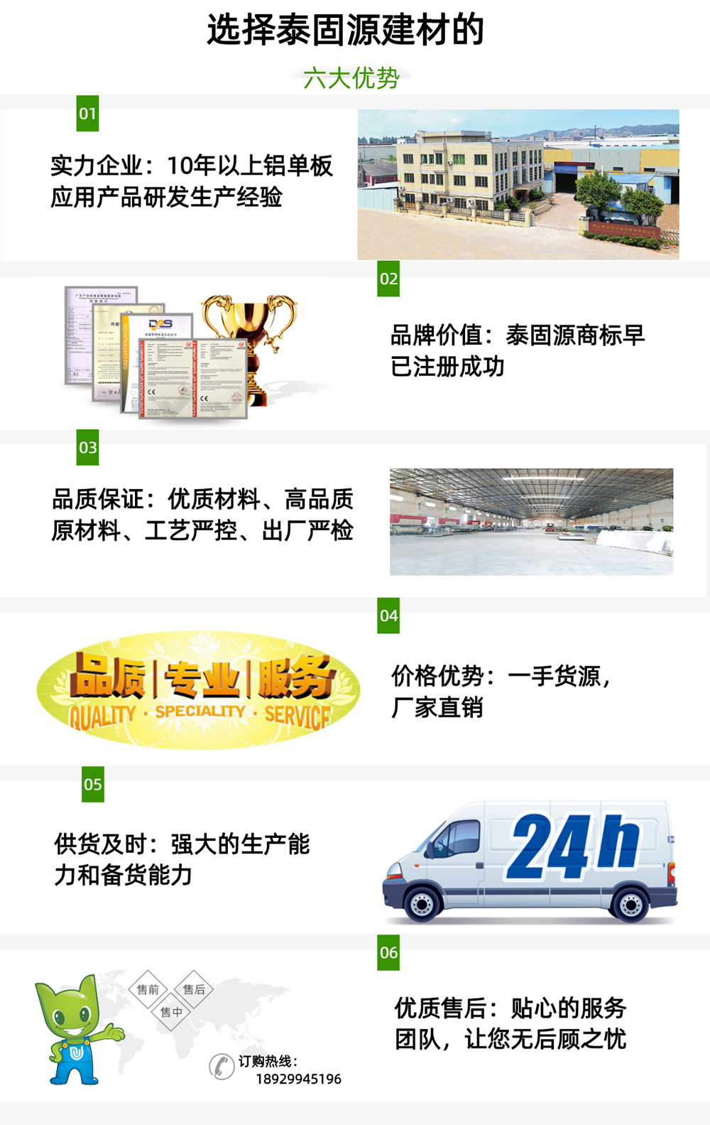 佛山市泰固源裝飾材料有限公司是一家研發(fā)、生產(chǎn)鋁單板和陶土板、航空板三大系列的大型企業(yè)。公司成立于二零一零年,鋁單板占地面積10000平米,陶土板占地面積300畝。擁有環(huán)境優(yōu)雅、寬敞、明亮的現(xiàn)代化標(biāo)準(zhǔn)廠房及辦公大樓。位于佛山市南海區(qū)里水勝利工業(yè)園,地理位置優(yōu)越。我司技術(shù)實(shí)力強(qiáng)大,生產(chǎn)管理科學(xué)嚴(yán)謹(jǐn)。它在引進(jìn)意大利生產(chǎn)設(shè)備的基礎(chǔ)上,立足于持續(xù)革新制造工藝,使各項(xiàng)技術(shù)指標(biāo)遠(yuǎn)遠(yuǎn)超出國家及行業(yè)標(biāo)準(zhǔn),跨入先進(jìn)水平行列,在經(jīng)濟(jì)和社會效益方面取得了巨大的成就。我司自主研發(fā)、生產(chǎn)泰固源鋁單板,泰固源陶土板這兩大系列產(chǎn)品,多年來,經(jīng)過公司全體員工的通力協(xié)作,我們的品牌產(chǎn)品(泰固源,辛源牌)得到業(yè)內(nèi)人士一致認(rèn)可。銷售網(wǎng)點(diǎn)遍布國內(nèi),并與諸多國內(nèi)外客戶建立了長期友好的合作關(guān)系,產(chǎn)品銷往國內(nèi)并走向世界